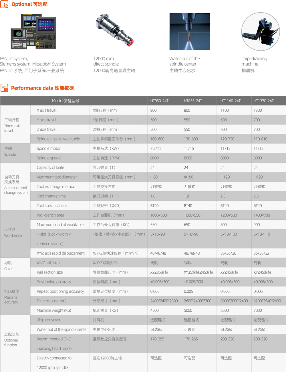 三軸36—48m/min,高速位移可節(jié)省非加工時間,大幅提高加工效率和保證加工光潔度。